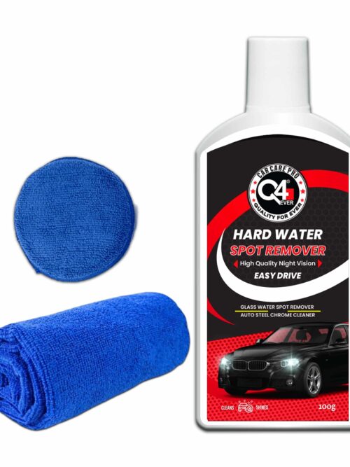 Hard water Stains/ water spots occur because of minerals such as calcium & sodium etc in water which deposit on the vehicle exterior. The Q4 Ever Hard water stain remover makes glass A smooth surface that is crystal clear by dissolving these minerals and the heavy-duty abrasives help completely remove and get rid of hard water spots.
